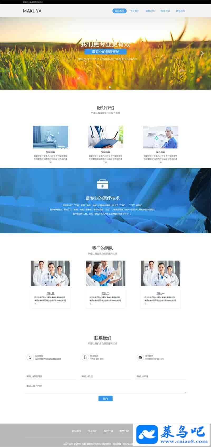 织梦dedecms响应式健康医疗机构网站模板(自适应手机移动端)本套织梦模板采用织梦最新内核开发的模板,这款模板使用范围极广,不仅仅局限于一类型的其企业,医疗类的都可以用该模板。你只需要把图片和产品内容换成你的即可,颜色都可以修改,改完让你耳目一新的感觉!布局规整,利于用户体验,手工书写DIV+CSS,代码精简。
