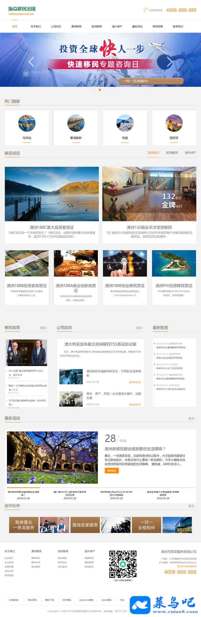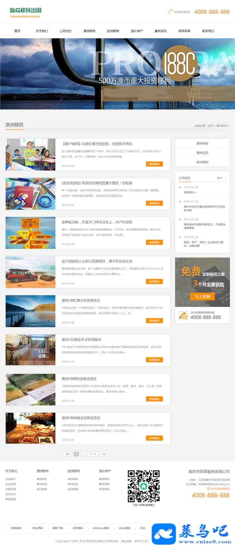 3、适用于移民留学织梦模板、签证办理网站源码;