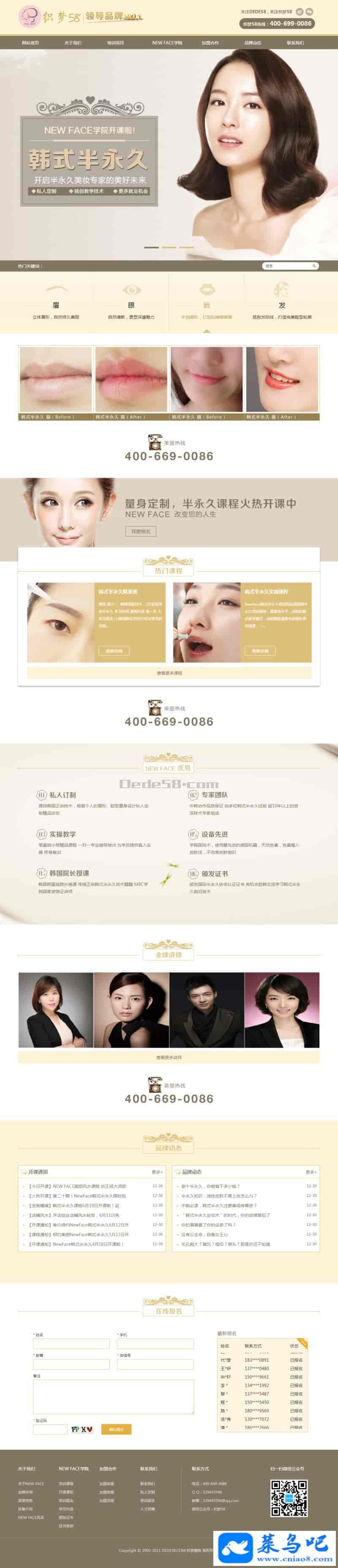 织梦dedecms美容美发化妆培训学校网站模板,PHP美容化妆培训机构网站源码模板介绍: