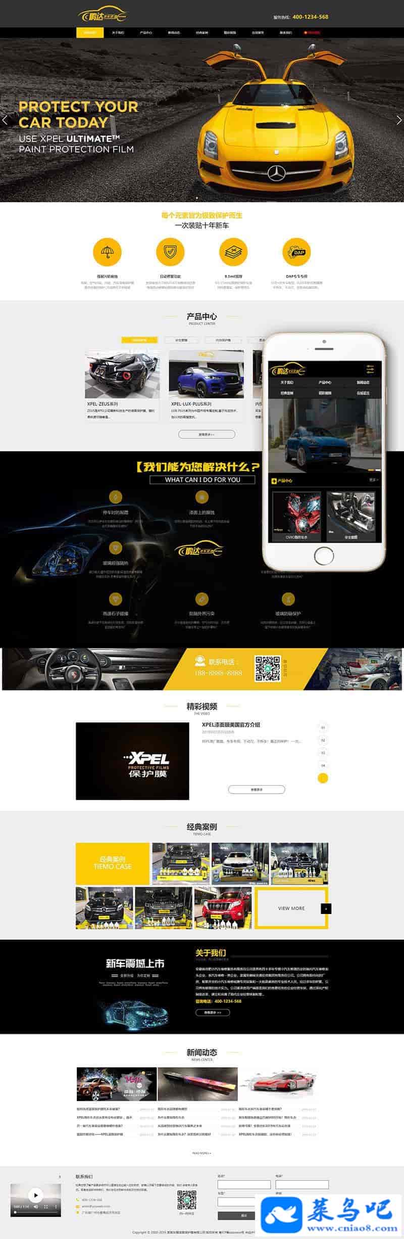织梦dedecms汽车美容维修贴膜公司网站模板(带手机移动端)模板说明: