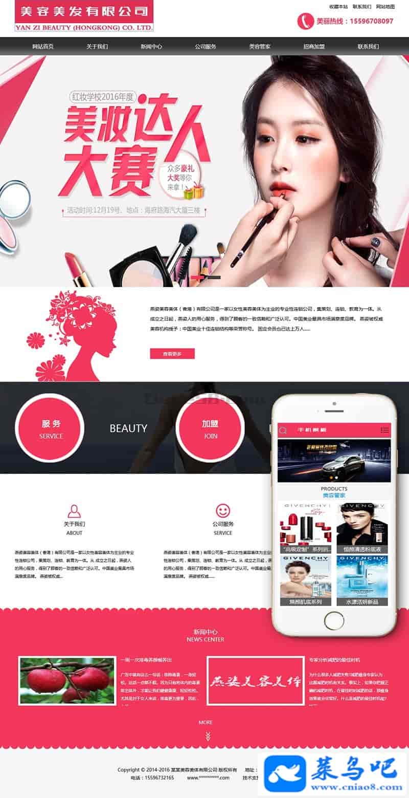 织梦dedecms美容美体化妆公司网站模板(带手机移动端)模板介绍: