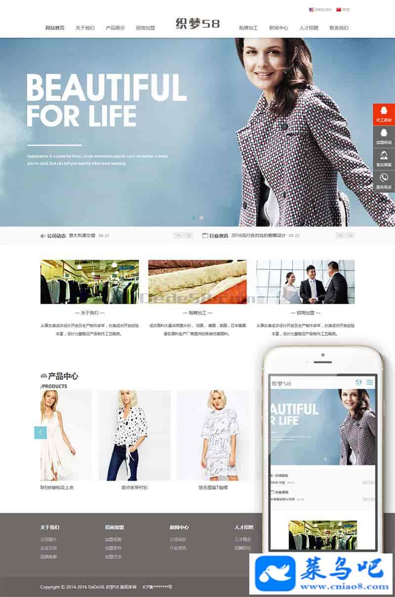 织梦dedecms响应式中英双语外贸服装加盟连锁店网站模板(自适应移动端)模板介绍: