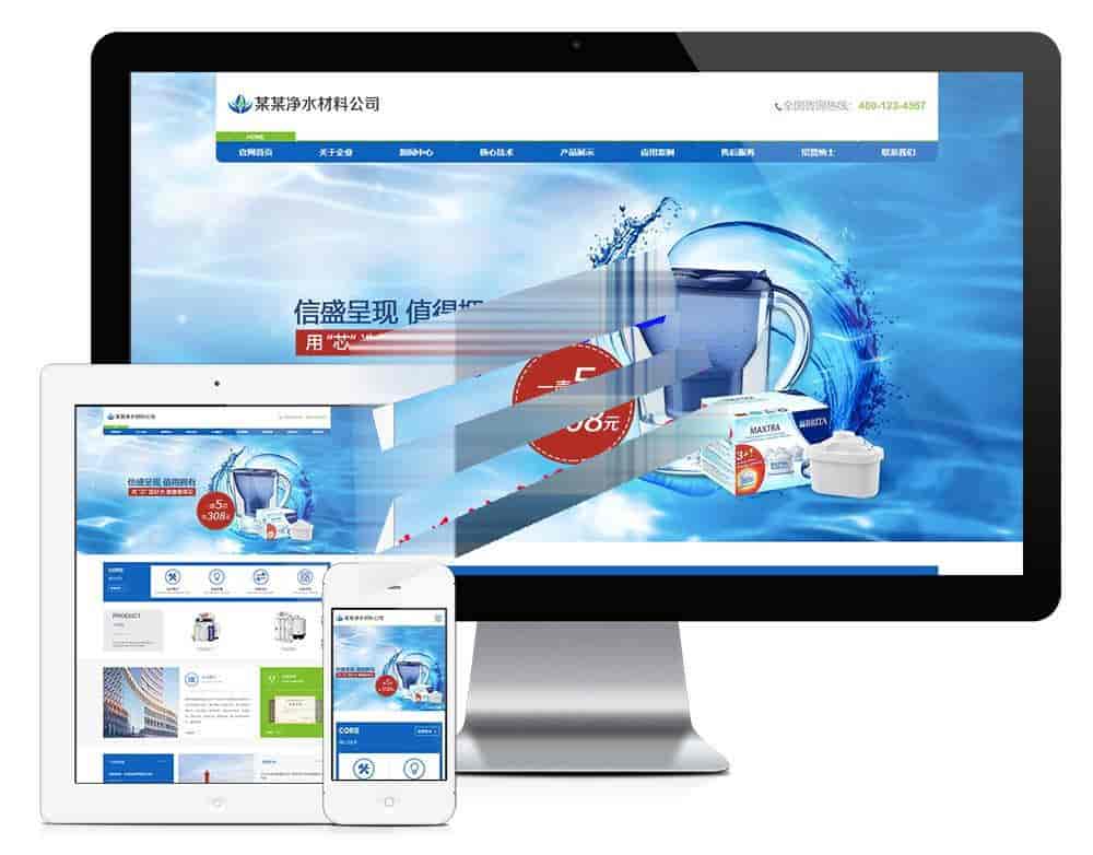 易优cms响应式净水材料设备公司网站模板源码 自适应手机端 带后台模板基于eyoucms内核制作,模板编码为UTF8 ,适合行业:机械电子类企业。