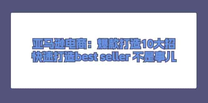 亚马逊电商:爆款打造10大招,快速打造best seller 不是事儿