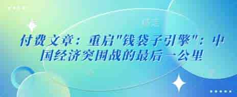 付费文章:重启”钱袋子引擎”:中国经济突围战的最后一公里