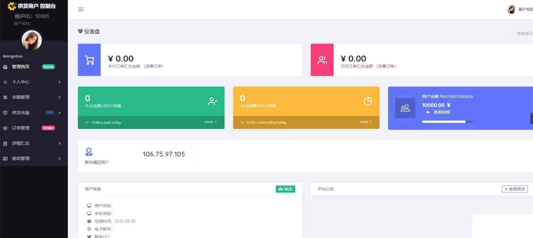 ⑤、有独立的商户后台和供应商后台可供供应商或商户查询订单以及官网订单号使用