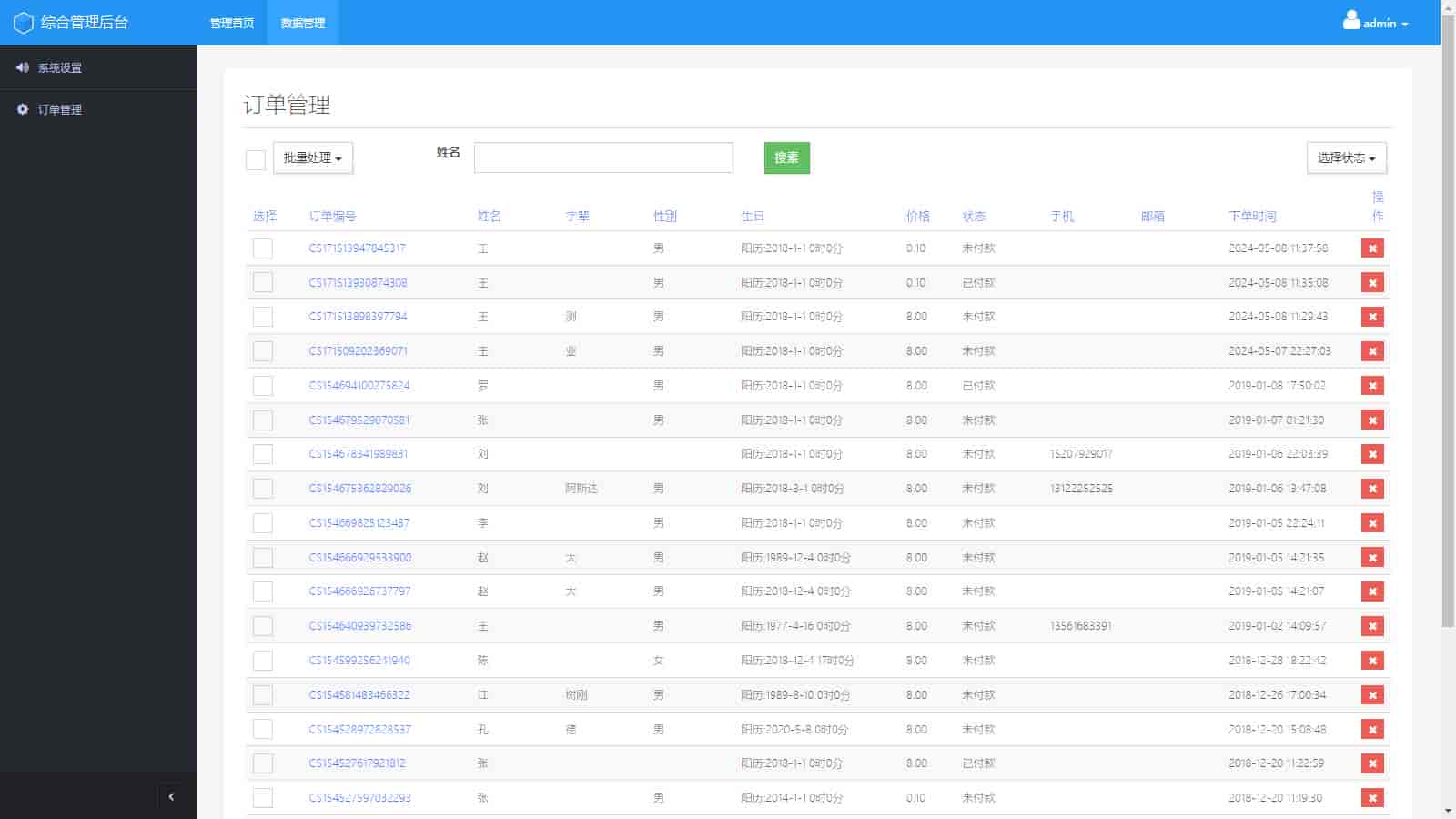 前一段时间给大家发布的是一款在线取名系统周易起名网站系统源码,但是支付接口无法唤起,花了一些时间修复了支付接口,对接官方的支付宝和微信支付接口,不使用无法确定安全性的第三方支付,并且修复了mysql5.6数据库恢复sql备份的时候由于语句字符串错误引起乱码的错误。