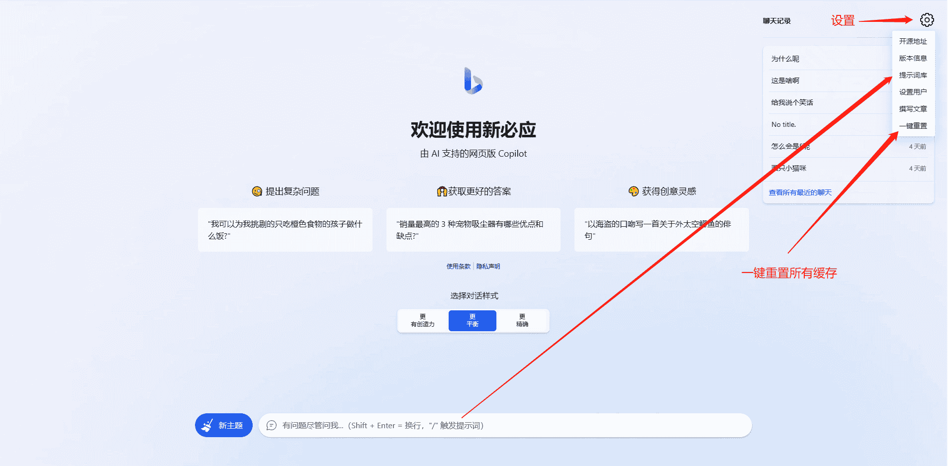 微软 New Bing 完美聊天机器人源码,支持 ChatGPT 提示词,拥有一致的 UI 体验,国内可用,基本兼容微软 Bing AI 所有功能