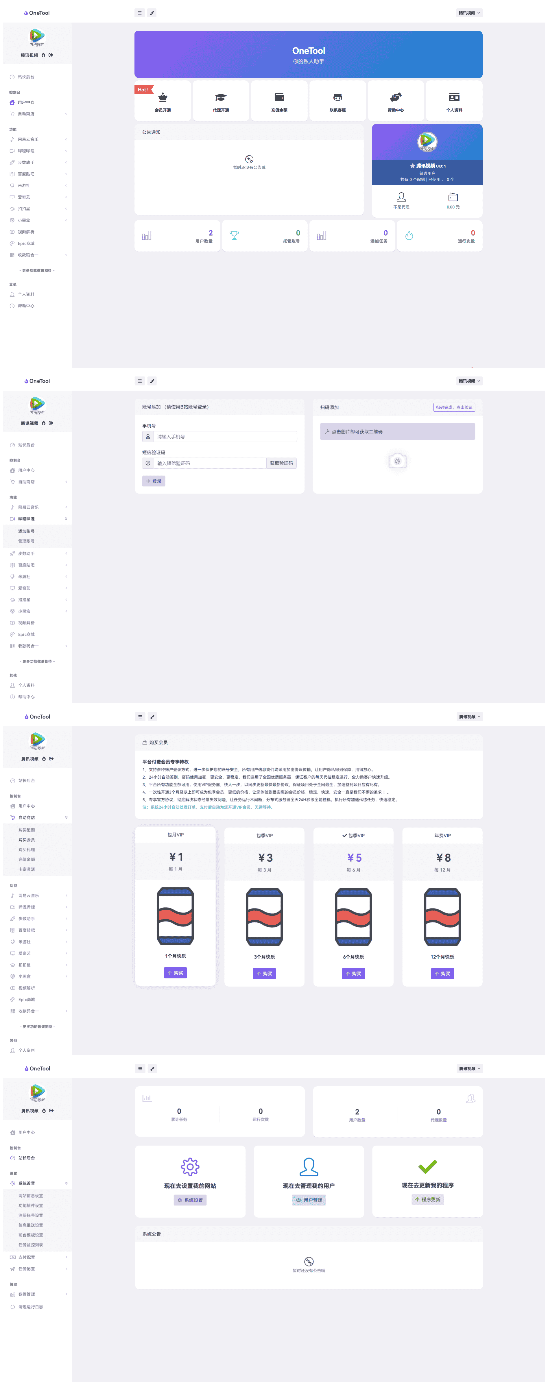 OneTool 是一款多用途云任务操作程序,可以帮助用户快速完成各种任务。例如网易云音乐每日签到、每日云贝、打卡 300 首歌曲、音乐人每日任务等;WX 运动健身记步范围设定, QQ 空间秒赞秒评;哔哩哔哩视频短片每日签到、每日在线观看、投币机、动漫作品每日签到、分享视频、天选抽奖活动;百度贴吧签到;爱奇艺 VIP 每日任务、每日抽奖活动、二端每日签到等等,都可以通过 OneTool 进行快速操作。