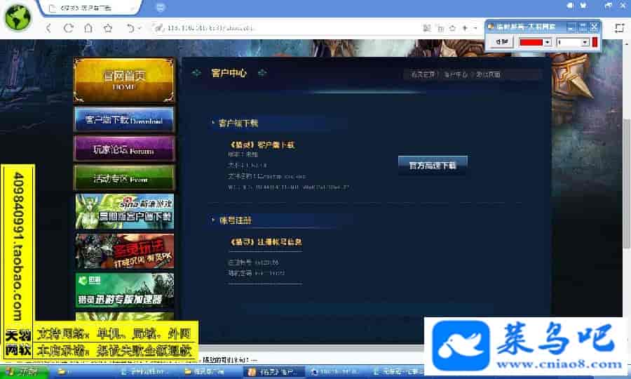 游戏名称:猎灵测试状态:单机、局域、外网 ( 架设外网仅支持独立服务器+IP )支持系统:服务端架设系统win2003/win2008/XP/win7/win8 -32/64位;玩家系统:玩家系统XP/win7/win8 -32/64位;显卡512M架设要求:请保证服务端所需端口全部开启且未被占用(系统问题请自行解决)配置要求:CPU双核+内存1G+硬盘10G(服务端D盘架设)架设难度:一键端架设指导:语音视频帐号注册:网站数据修改:GM工具、一键IP修改工具↓↓游戏更新↓↓1.增加GM工具2.增加一键IP修改工具3.增加网站帐号注册图片展示: