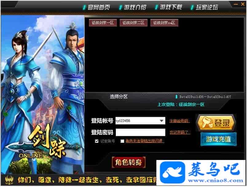游戏名称:剑宗测试状态:单机、局域、外网 ( 架设外网仅支持独立服务器+IP )支持系统:服务端架设系统win2003/XP -32位;玩家系统仅支持xp/win7/win8;显卡512M架设要求:请保证服务端所需端口全部开启且未被占用(系统问题请自行解决)配置要求:CPU双核+内存1G+硬盘10G(服务端D盘架设)架设难度:一键端架设指导:语音视频帐号注册:登陆器数据修改:数据管理工具、多区一键配置工具、合区工具↓↓游戏更新↓↓1.增加数据管理工具2.增加多区配置器、合区工具3.更新登陆器多区登陆4.增加注册网关限制登陆IP段5.修复WPE刷元宝BUG以及客户端闪退修复6.此端有溢出问题、长时间开有时会卡图片展示: