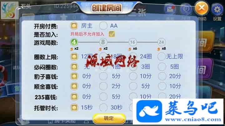 可以闷牌,可以托管,可以AA付费,可以设置圈数以及喜钱等等!