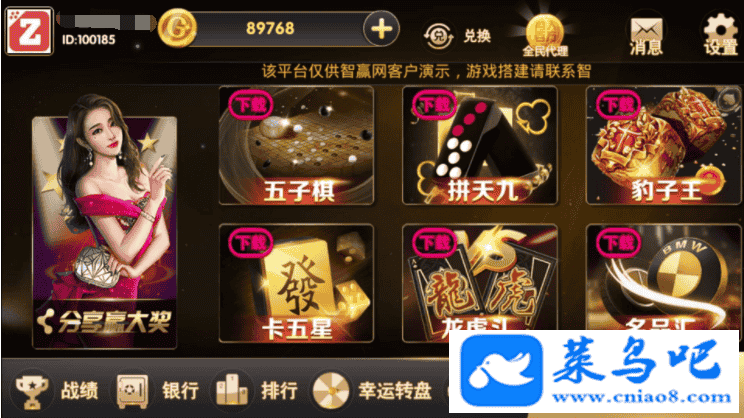 三个APP界面可选,代理也是正常的,房卡和金币游戏版本很赞的,可代理充值+对接在线充值。