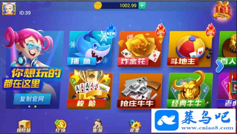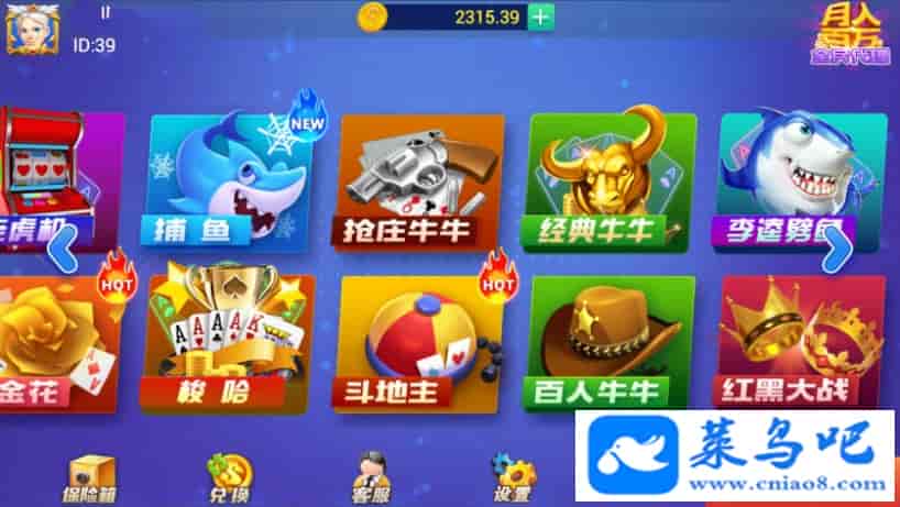 所含游戏有: 3D捕鱼、炸金花、斗地主、百人牛牛、梭哈、抢庄牛牛、经典牛牛、红黑大战、李逵捕鱼、拉霸