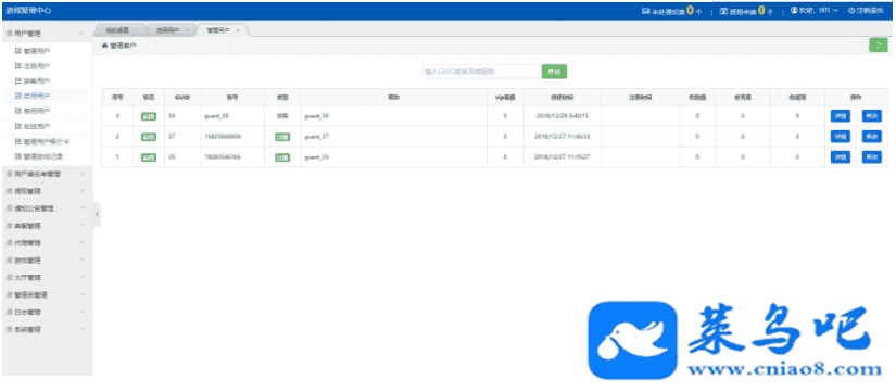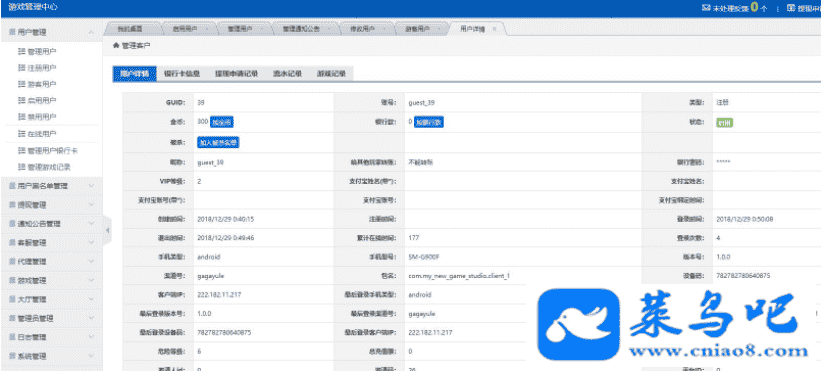 九州娱乐,服务端为LUA语言开发,查看服务端是有个源码,具体自己查看,客户端也是lua明文,使用WIN平台服务器及SQL,后台为ASPX