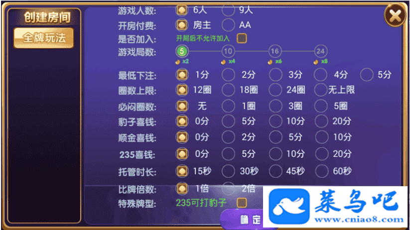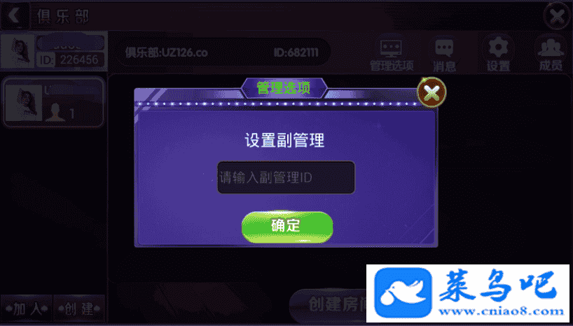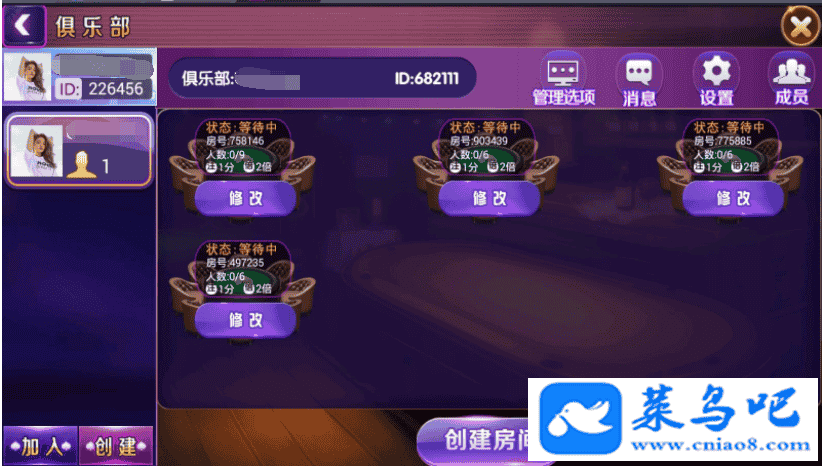 此套程序为后端开启控制,前端点控,6-9人同桌!俱乐部创建的前提要是代理才可以创建!
