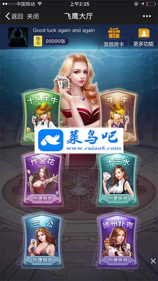目前游戏能玩的有十三人牛牛、十人牛牛和炸金花,带透视,带座位点控,只要在游戏准备前双击不同座位便可以得到你想要的各种不同的牌型,特殊牛、牛牛、牛九、同花顺、同花、顺子、对子等不同的牌型。