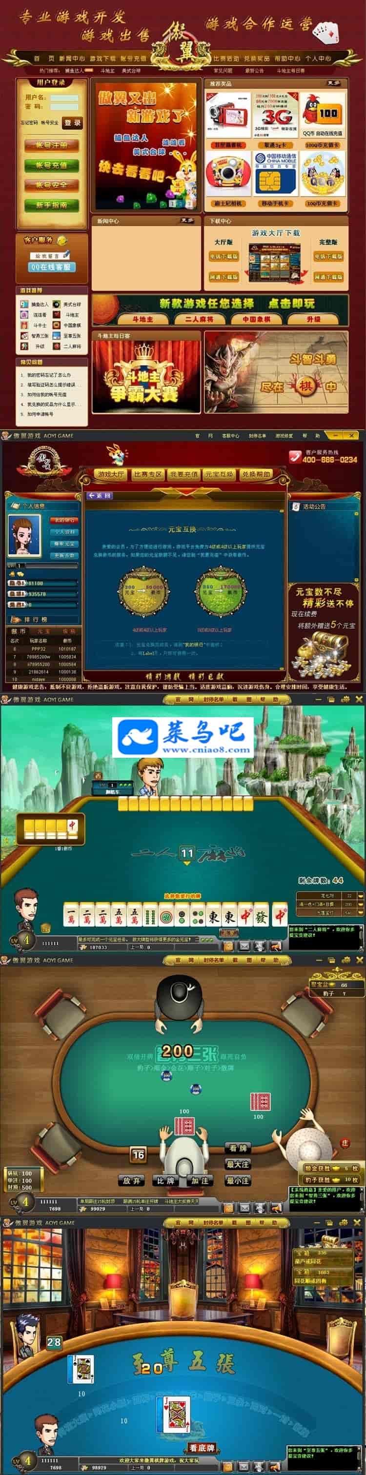 傲翼棋牌火爆上面市!机不可失,该版本限量限时销售!平台游戏为波克城市 3D 人物效果,斗地主为带任务系统,更刺激。