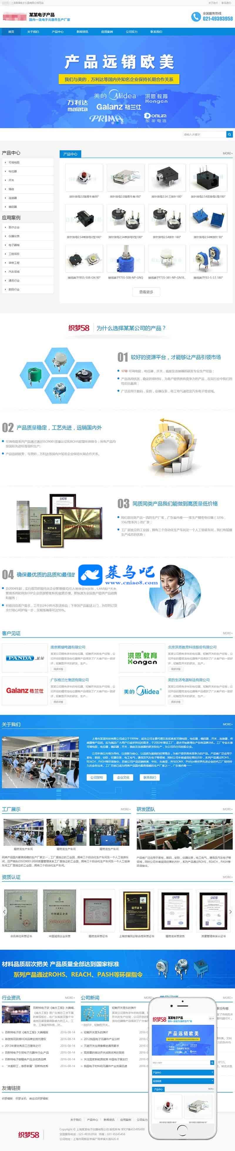 织梦最新内核开发的模板,该模板属于响应式、营销型、电子数码产品、电子仪器、电子元器件、机械产品类企业使用,一款适用性很强的模板,基本可以适合各行业的企业网站!