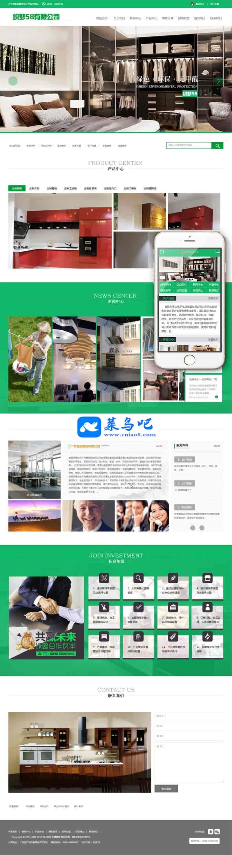 织梦dedecms绿色风格智能家居家具公司网站模板(带手机移动端)模板介绍: