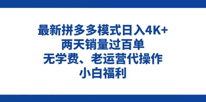 拼多多最新模式日入4K+两天销量过百单,无学费、老运营代操作、小白福利