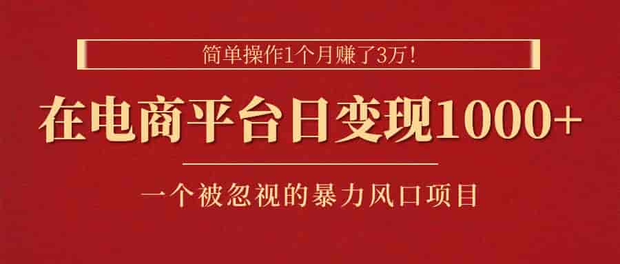 简单操作1个月赚了3万!在电商平台日变现1000+!一个被忽视的暴力风口…