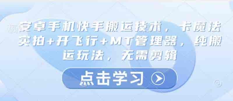 [项目营销] 安卓手机快手搬运技术,卡魔法实拍+开飞行+MT管理器,纯搬运玩法,无需剪辑