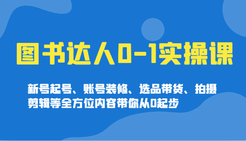 图书达人0-1实操课,新号起号、账号装修、选品带货、拍摄剪辑等全方位内容带你从0起步