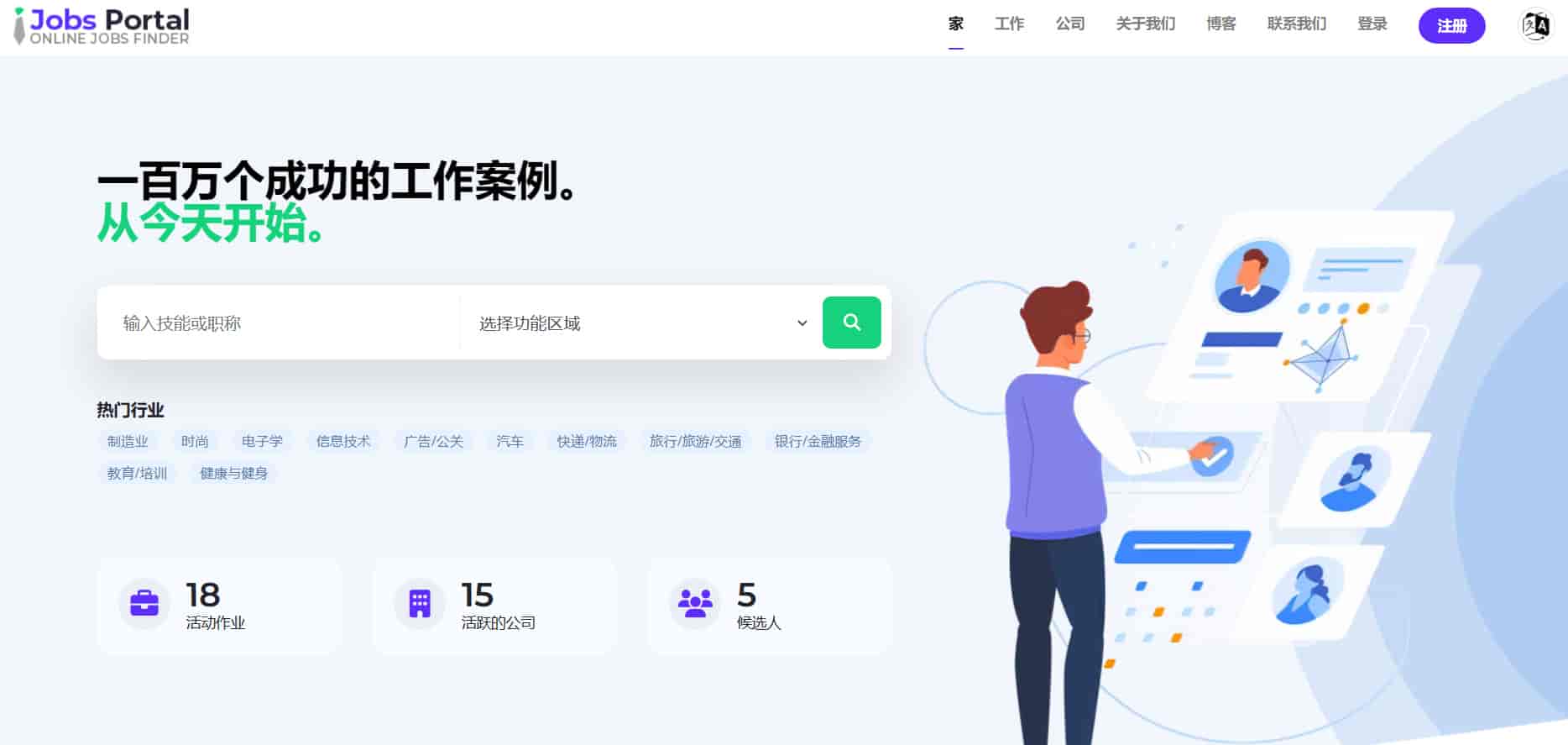 Jobs Portal是为求职者和公司发布职位而开发的交互式求职招聘源码。它使求职者能够发布简历、搜索工作、查看个人工作列表。 它将提供各种公司在网站上放置他们的职位空缺资料,并且还可以选择搜索候选人简历。 除此之外,还有一个管理模块供客户更改数据库内容。