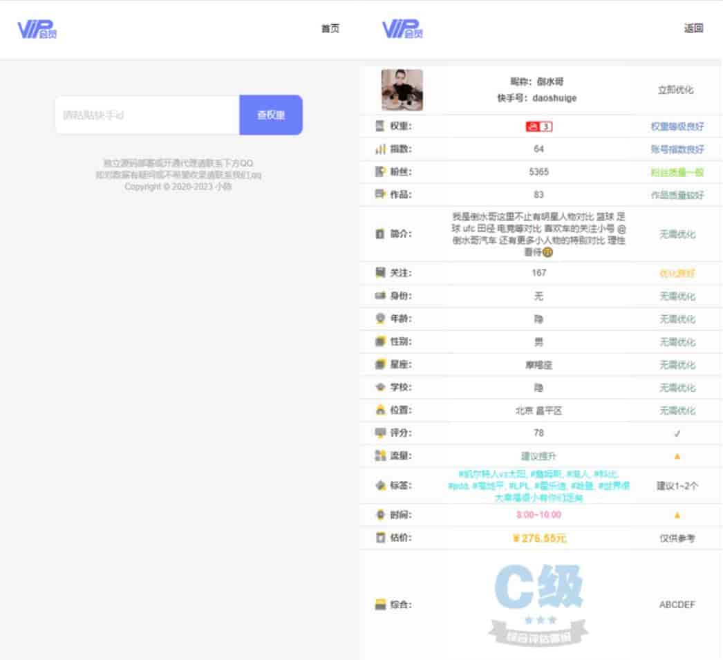 [PHP源码] 快手权重查询源码快手权重查询算法优化快手权重查询API接口