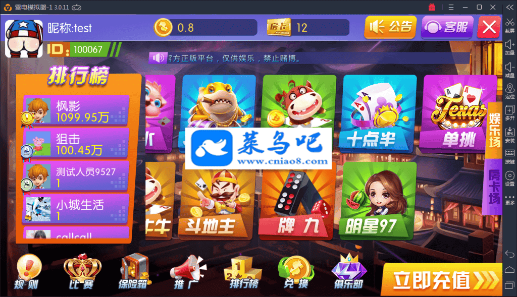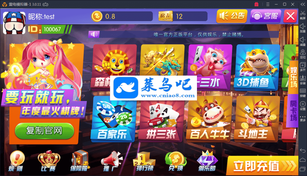 最新流行UI简洁方块界面,房卡游戏(基金俱乐部功能)+娱乐金币游戏(机器人陪玩)+电玩娱乐游戏三合一,会员无限级推广系统,后台控制.