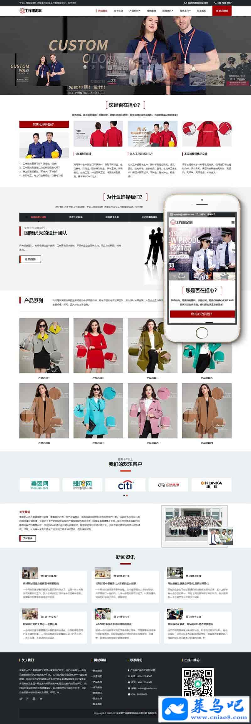 响应式工作服设计定制类网站织梦模板(自适应手机端)+PC+wap+利于SEO优化
