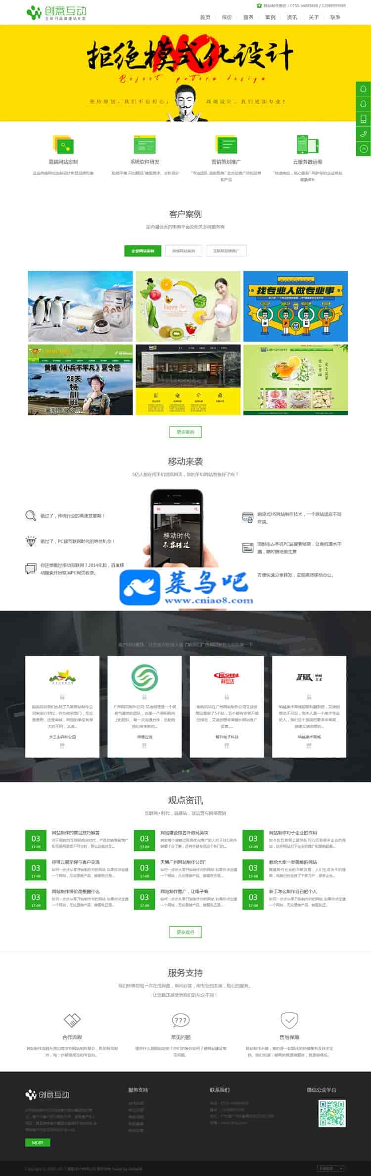 HTML5响应式网络建站设计公司织梦模板(自适应手机移动端),dedecms互联网品牌建站服务平台整站源码下载安装说明: