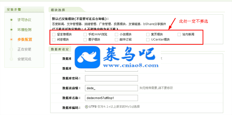 注:若提示无法安装,页面出现DIY字样。请进入install文件夹,将install_lock.txt文件删掉。把index.php.bak文件改为index.php即可!