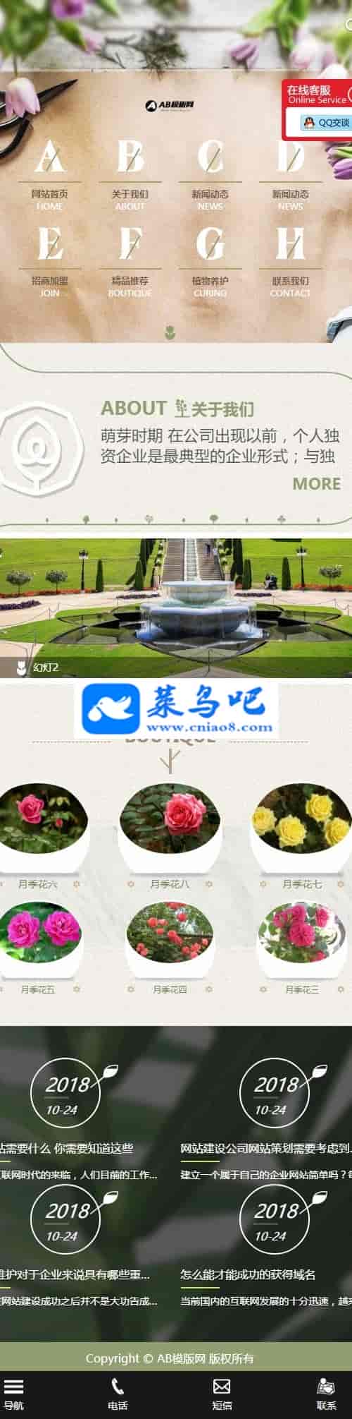 3、适用于园林花卉织梦模板、鲜花植物养护网站源码;