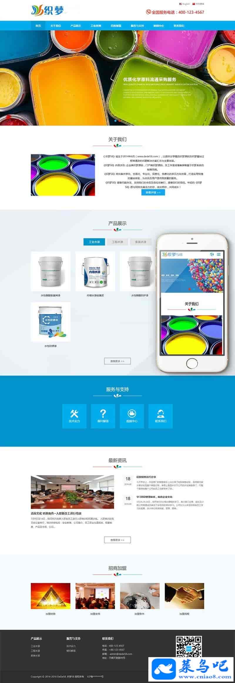 织梦最新内核开发的模板,该模板属于中英双语、HTML5响应式、油漆、装修材料类企业使用,一款适用性很强的模板,基本可以适合各行业的企业网站!