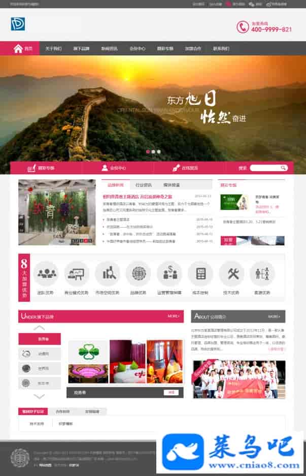 织梦最新内核开发的模板,该模板属于酒店行业,旅馆企业,住宿类,属于企业通用,酒店住宿、住宿旅游等企业均可以使用该模板,页面简洁简单,容易管理,DEDE5.5内核以上都可以使用;附带测试数据!