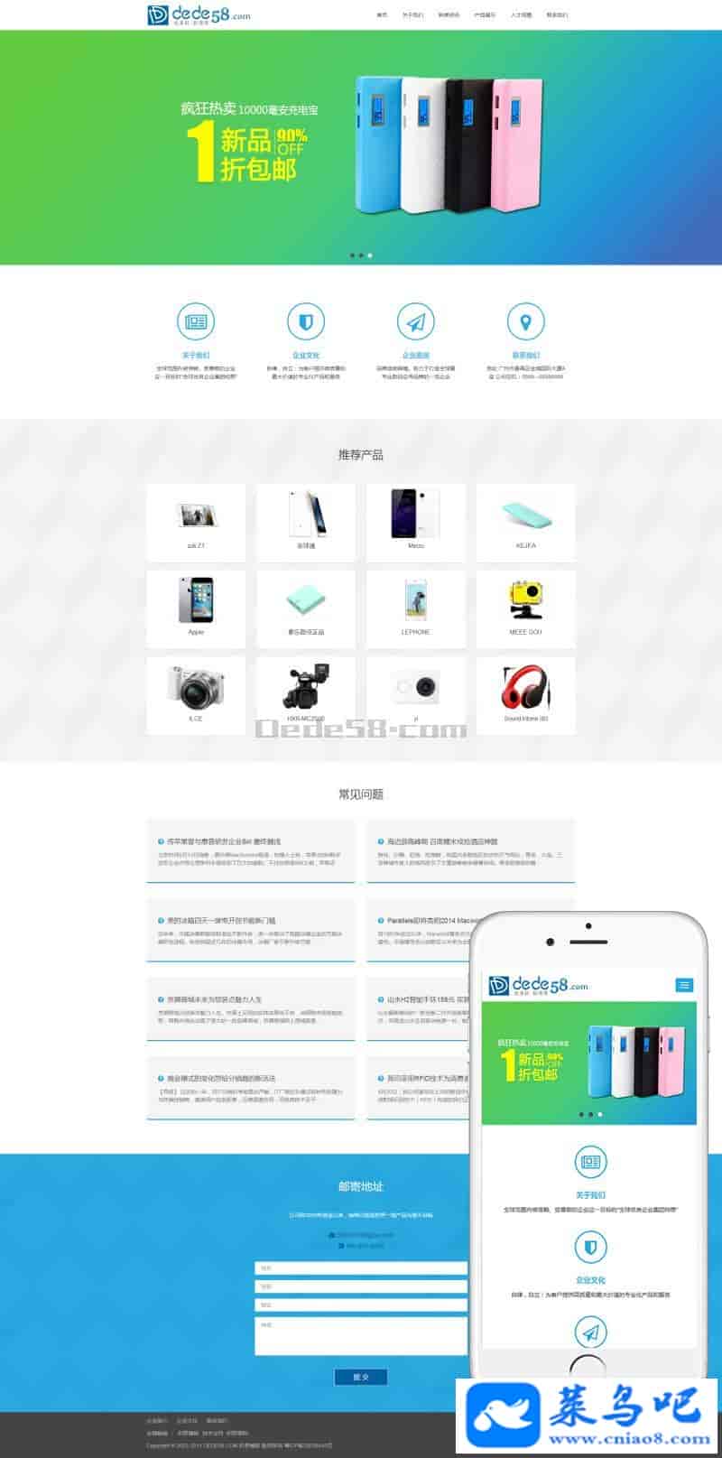 织梦dedecms简洁响应式电子产品公司网站模板(自适应手机移动端)