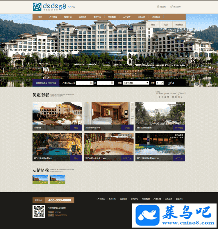 织梦最新内核开发的模板,该模板属于酒店行业,旅馆、宾馆客栈有预定功能企业,
