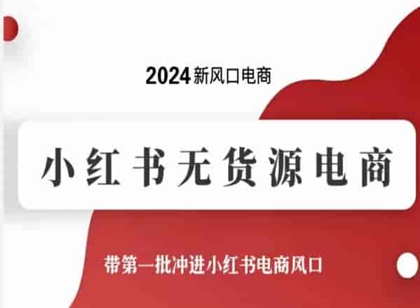 2024新风口小红书无货源电商,带第一批冲进小红书电商风口