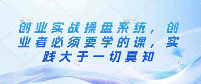 创业实战操盘系统,创业者必须要学的课,实践大于一切真知