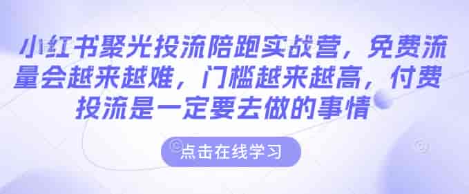 小红书聚光投流陪跑实战营,免费流量会越来越难,门槛越来越高,付费投流是一定要去做的事情