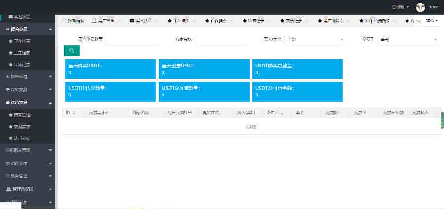 前端界面看着差不多 后台好像不一样。这套现在肯定值不了这个价了,不过也还是有他的价值的,喜欢的可以下载研究。 本系统的主要功能包括币币交易、法币交易、C2C交易、合约交易。 页面包含个人的分享邀请好友、理财中心、币兑中心等功能。 首页页面为轮播图、交易行情、主流币的涨幅行情。 行情页面为各个交易对的行情信息,后台可调控交易对。 C2C页面展示用户的购买或出售需求,支持支付宝、微信、银行卡多种方式, 在购买或出售弹窗填写交易信息下单支付后联系商家或联系商家进行付款