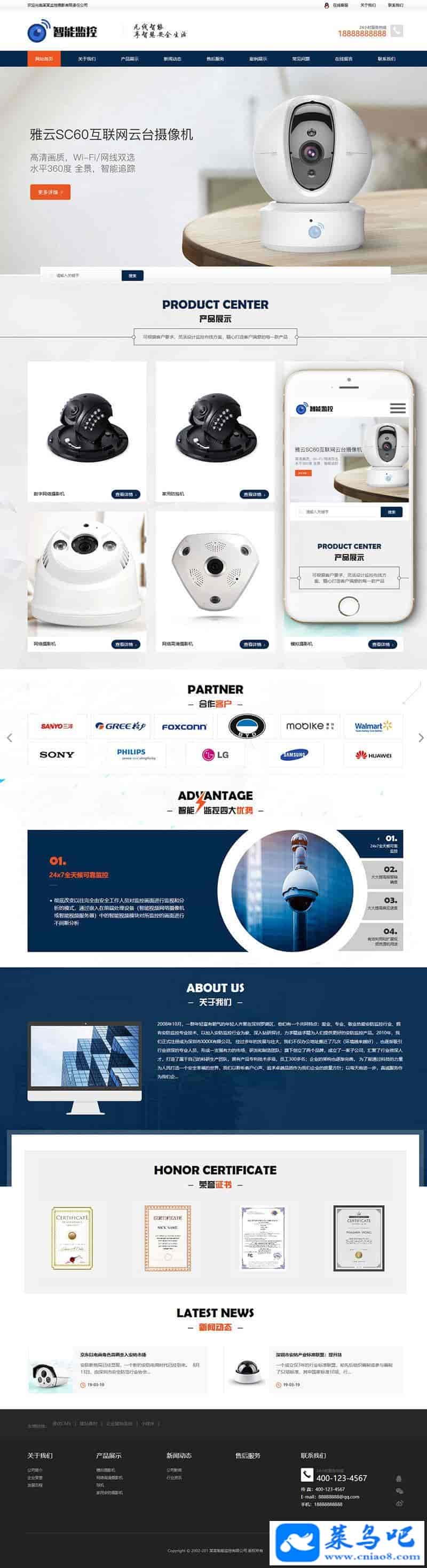 响应式智能安防监控摄影类网站织梦模板(自适应手机端)+PC+wap+利于SEO优化