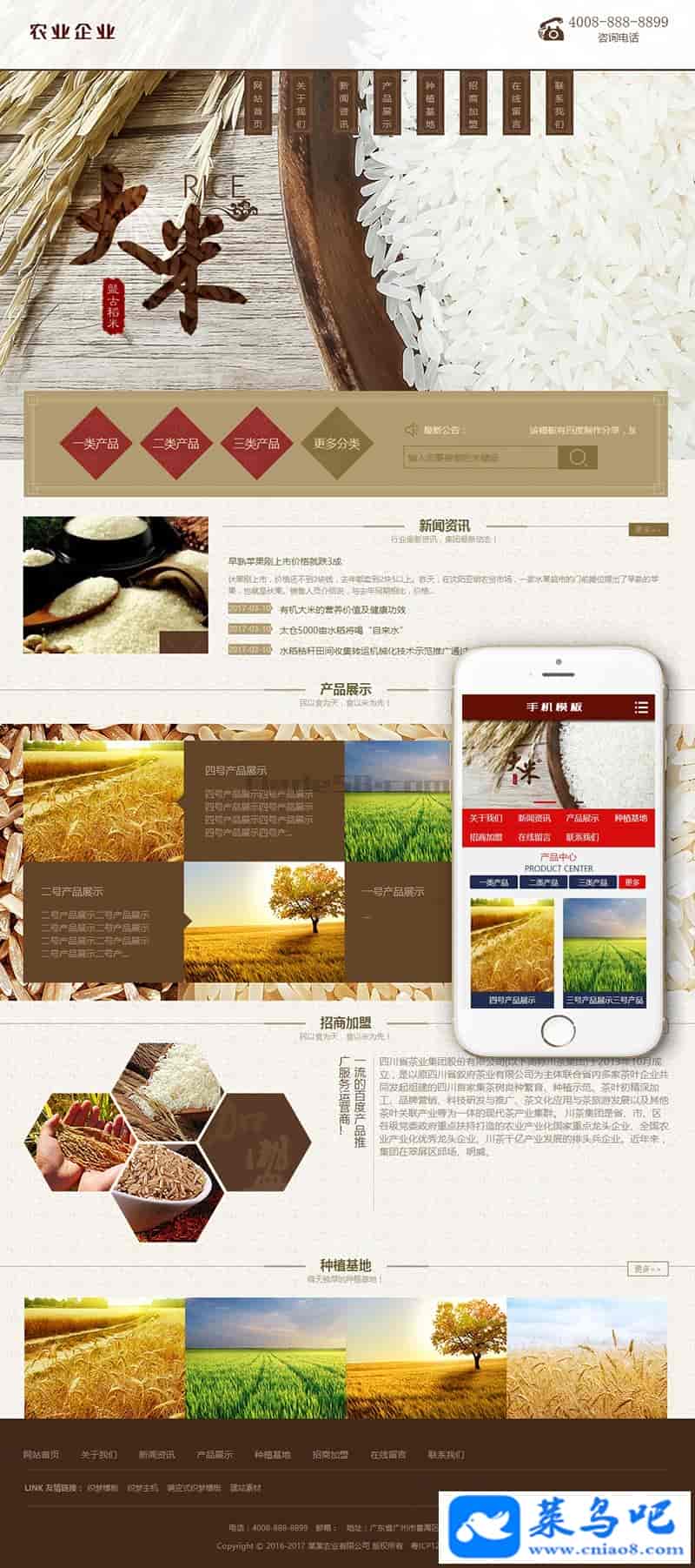 谷类大米农作物农业网站织梦模板(带手机端)+PC+移动端+利于SEO优化