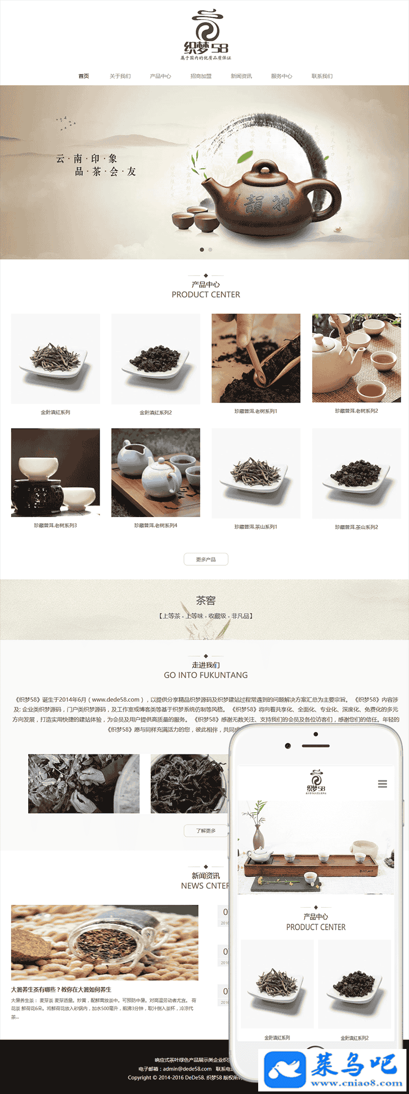 响应式茶叶网站源码|绿色产品展示类企业织梦模板(自适应手机版)