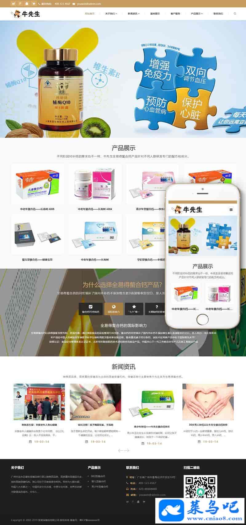 响应式钙片保健品类网站织梦模板(自适应手机端)+PC+wap+利于SEO优化