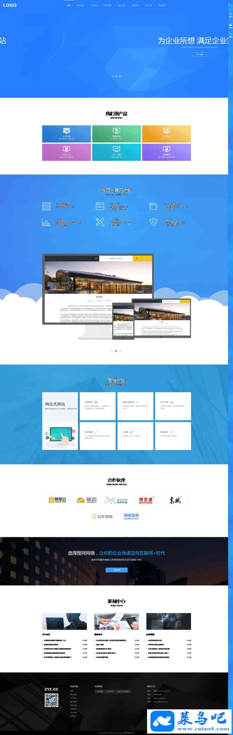 1.一款利于SEO的模板,手工CSS+DIV,图片ALT,H系列标签已合理运用。