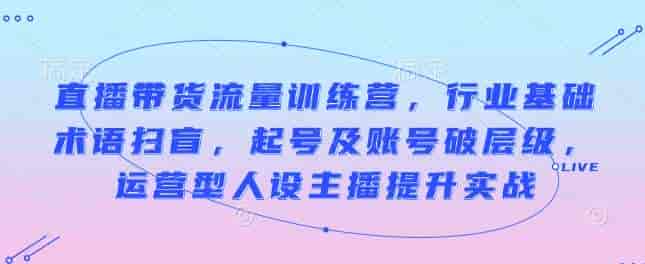 直播带货流量训练营,行业基础术语扫盲,起号及账号破层级,运营型人设主播提升实战