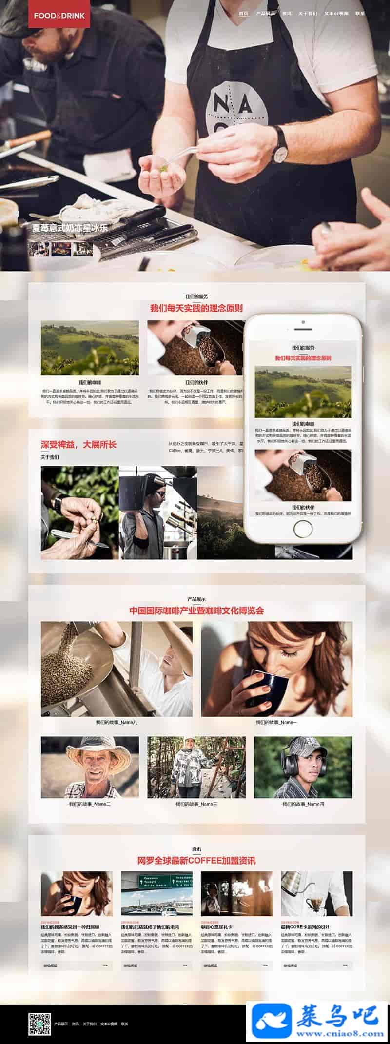 响应式咖啡奶茶原料制作类网站织梦模板(自适应手机端)+PC+wap+利于SEO优化